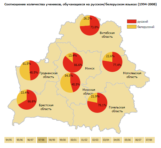 У гэтым навучальным годзе на беларускай мове навучаюцца 128,6 тысяч школьнікаў. З кожным годам колькасць такіх вучняў памяншаецца. У сярэдзіне 1990-х гадоў сярэднюю адукацыю на беларускай мове атрымлівалі больш за 500 тысяч школьнікаў.