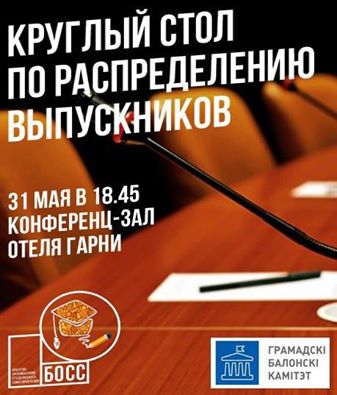 31 мая прошел совместный круглый стол команды программы “Распределение” Братства организаторов студенческого самоуправления (БОСС) и ОБК, посвященный проблемам распределения выпускников. В мероприятии приняли участие студенты, преподаватели, эксперты ОБК и БОСС, представители Задзіночання Беларускіх Студэнтаў (ЗБС) и Беларускага нацыянальнага моладзевага савета “РАДА”.